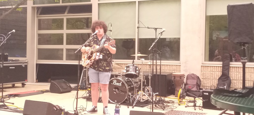 Extraordinora opened the show early in the day after picking up the guitar just over a month ago. The early crowd was jazzed by covers including some work by the Front Bottoms. After the performance, Extraordinora helped the Music Production Club behind the scenes as the other artists trickled in for their sets.Plazapalooza’s lineup features bands comprised of students and local artists around the DMV